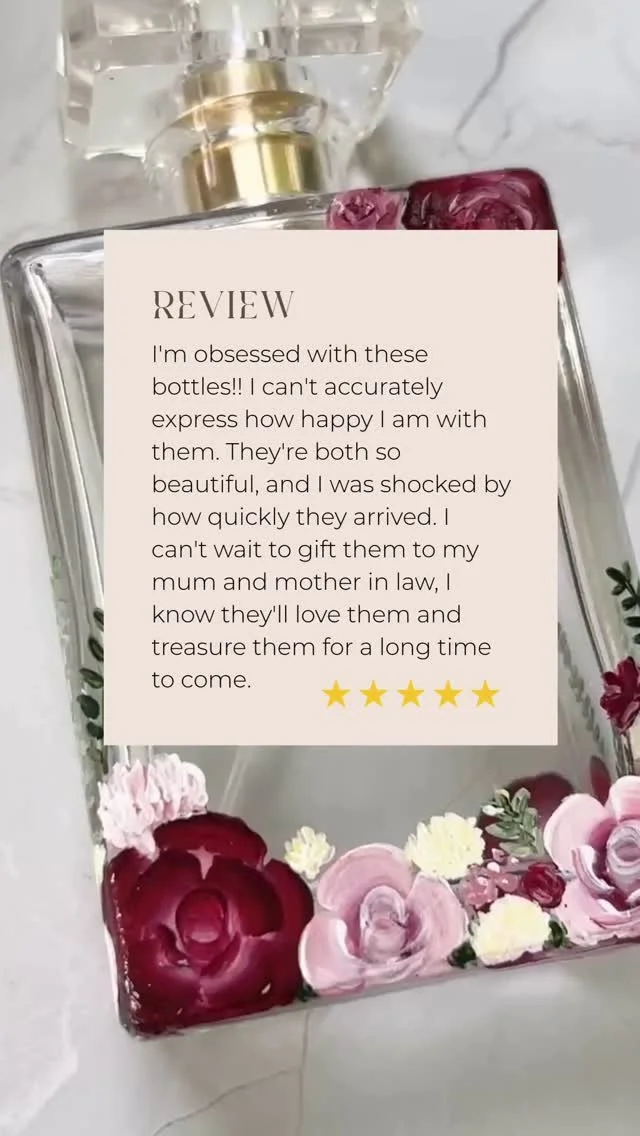 Visit my shop to see my selection of hand-painted and hand-engraved perfume bottles. Each one is completely unique, making it a perfect keepsake for the Mother of the Bride or Groom, a thoughtful wedding present, or a romantic surprise for Valentine’s Day or an anniversary.